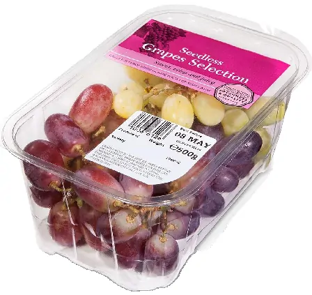 Как коробка, так и пленка для крышки изготовлены из ПЭТ (включая отрываемый слой), совместимого с существующими потоками переработки, с чистотой регенерации >98 % (сертификат APR). Ультрапрозрачный дизайн (мутность <2%), естественная цветопередача фруктов и овощей увеличивается на 50%, а желание потребителей покупать увеличивается на 40%.